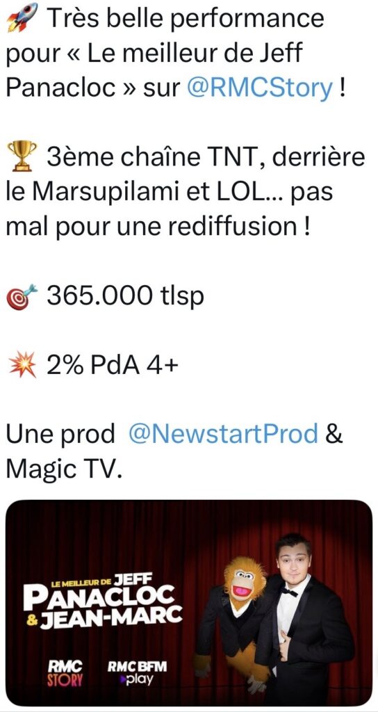 Enorme succès pour "Le meilleur de Jeff Panacloc" sur RMC Story !